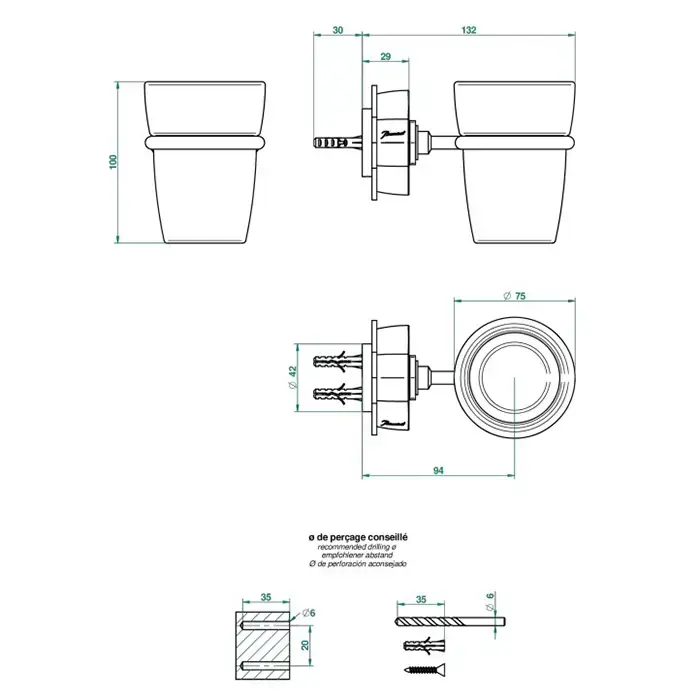 THG PETALE DE CRISTAL CLAIR Стакан стеклянный, подвесной, цвет хром