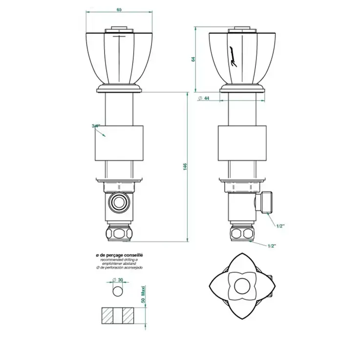 THG PETALE DE CRISTAL NOIR Вентиль смесителя для раковины, цвет полированное золото