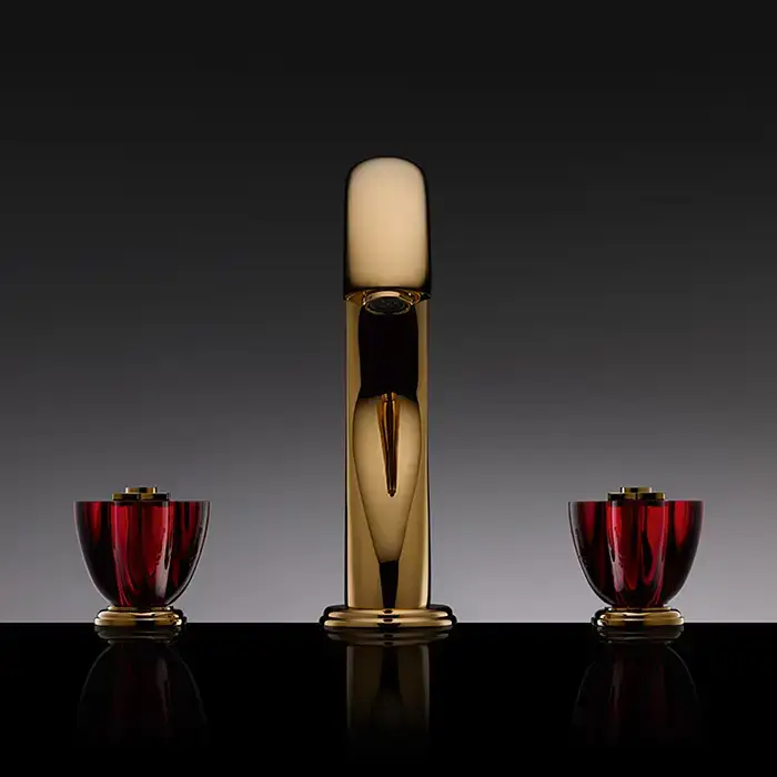 THG Petale de Cristal rouge Смеситель для раковины на 3 отверстия, с донным клапаном, цвет: полированное золото