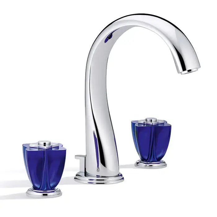 THG Pуtale de cristal bleu Смеситель для раковины, 3 отв., цвет: хром/синий хрусталь