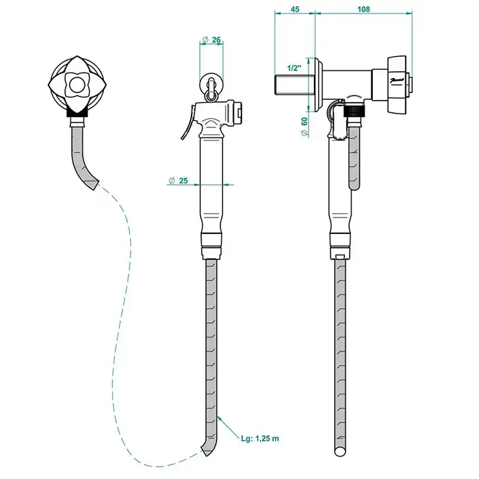 THG PETALE DE CRISTAL CLAIR Гигиенический душ, в комплекте с запорным вентилем, шлангом 1250 мм и держателем, стекло прозрач, цвет полированное золото