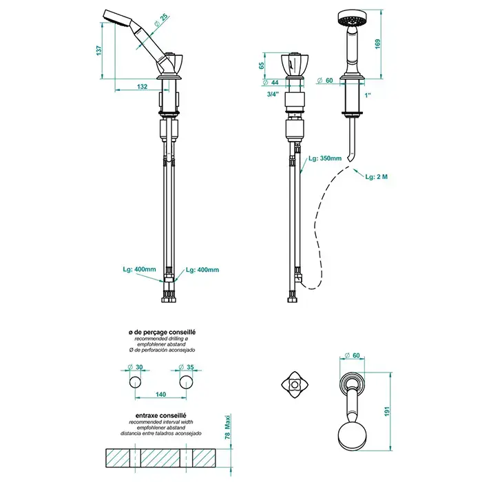 THG Pуtale de cristal clair Ручной душ на борт ванны, 2 отв., цвет: хром/прозрачный хрусталь