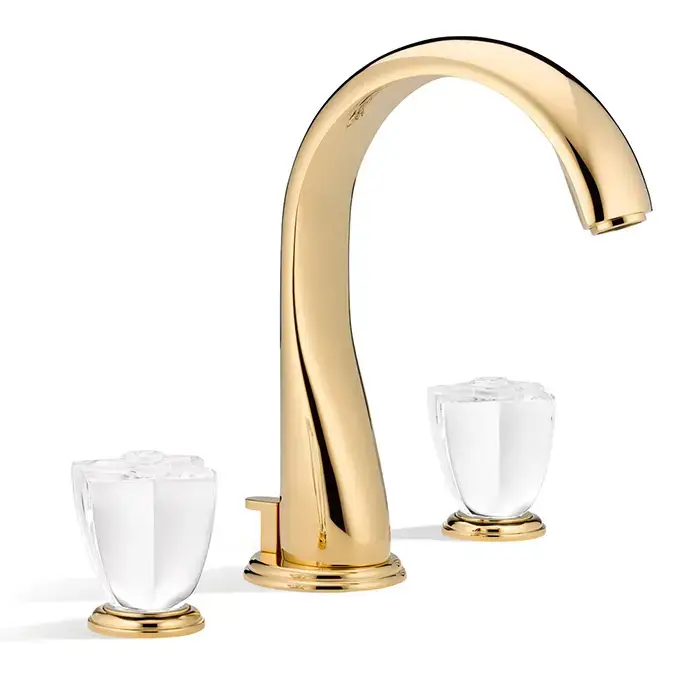 THG PETALE DE CRISTAL CLAIR Смеситель для раковины на 3 отверстия, с донным клапаном, цвет полированное золото