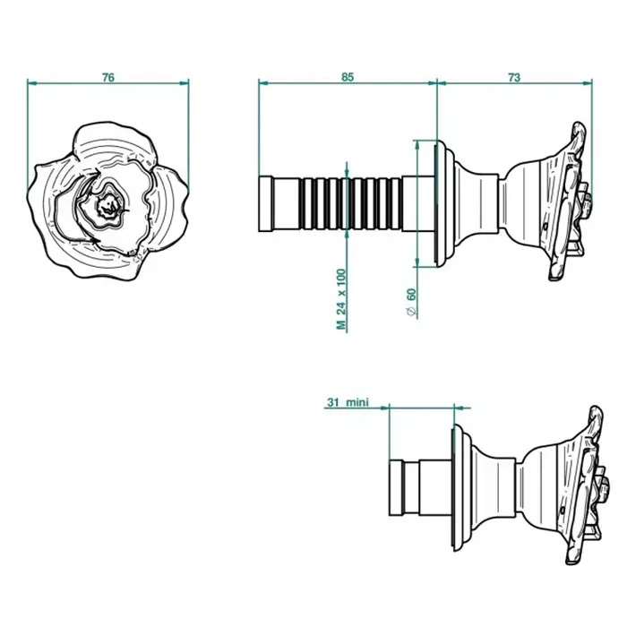 THG ROSE Запорный вентиль встраиваемый в стену, внешняя часть, цвет полированное золото