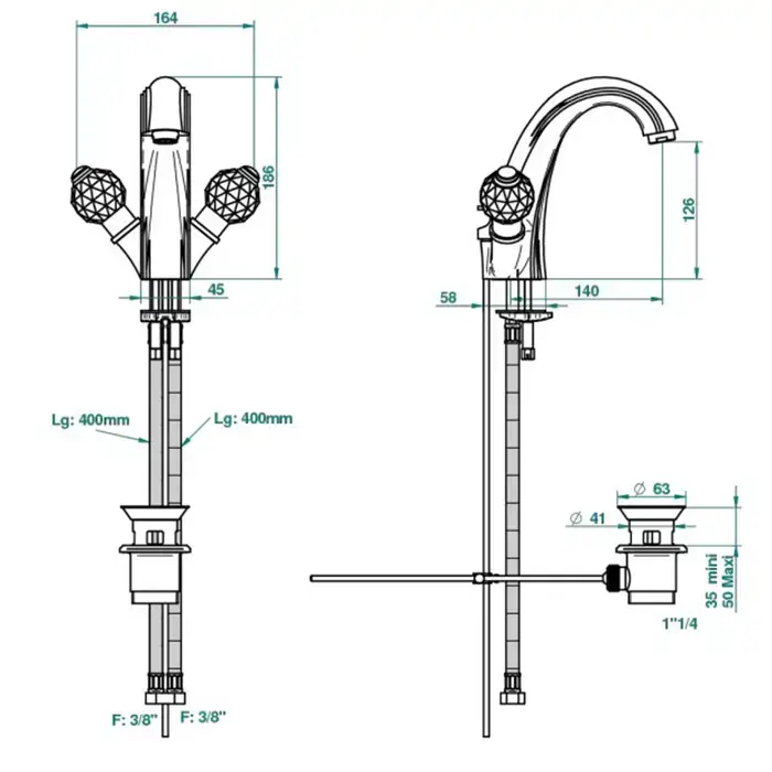 THGMandarine Cristallia Diamant Смеситель для раковины на 1 отверстие, с донным клапаном, цвет: полированное золото