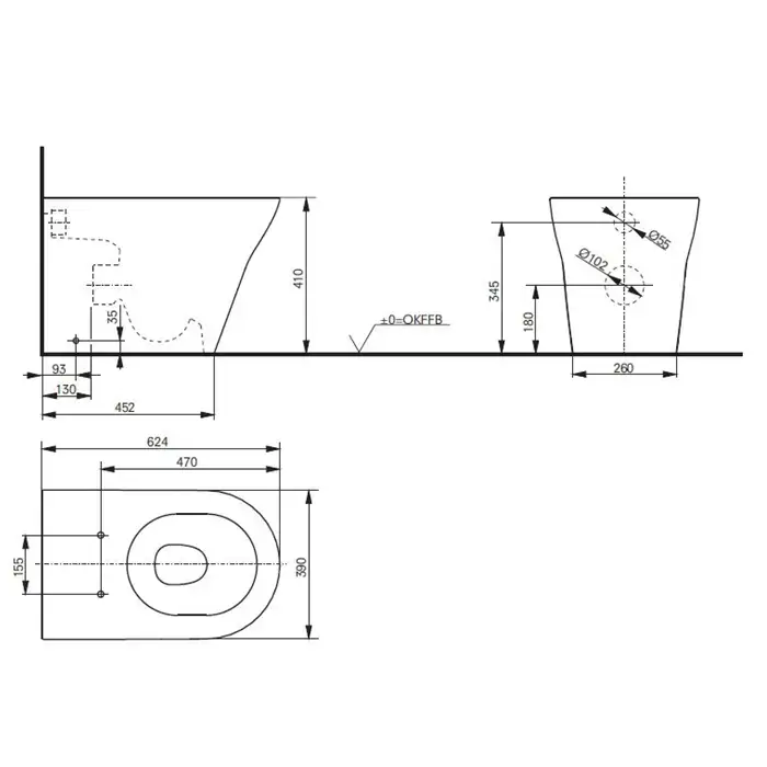 TOTO WU Раковина 59×38×20.7см., без отв., встраиваемая снизу, с переливом, цвет: белый