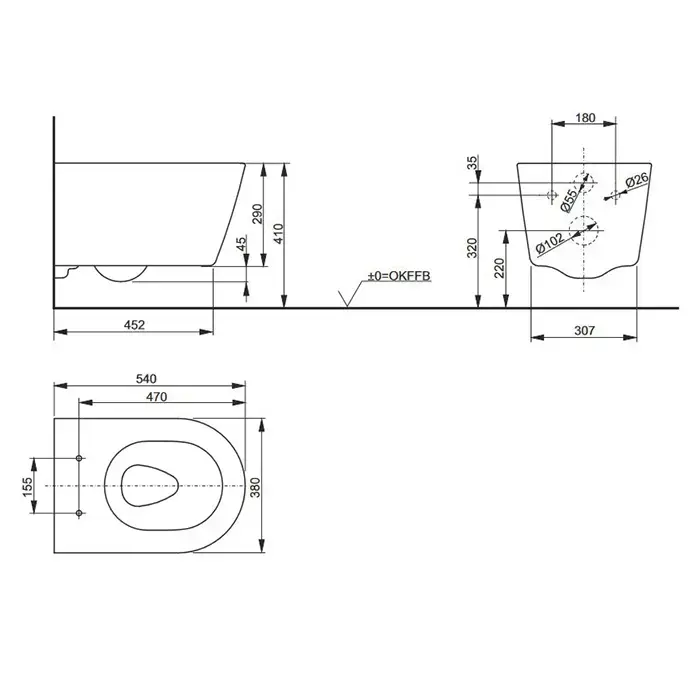 TOTO RP Унитаз подвесной 540*380*335 мм, с креплением, без сиденья, цвет: белый