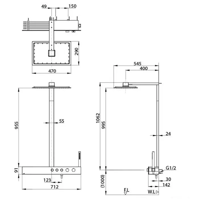 TOTO Z Душевая стойка с термостатическим смесителем, верхним и ручным душем 112x545x1113мм с белой полочкой, цвет хром (НЕТ ПОСТАВОК!)