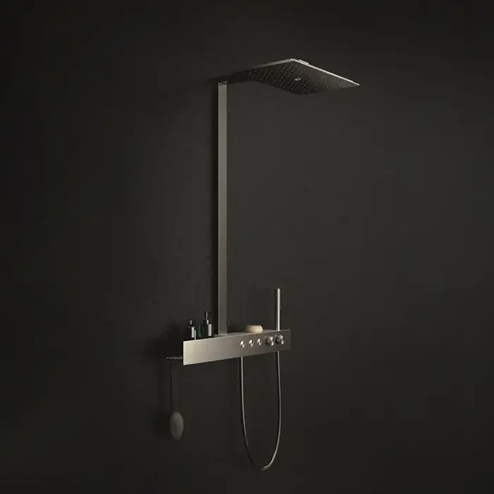 TOTO Z Душевая стойка с термостатическим смесителем, верхним и ручным душем 112x545x1113мм с белой полочкой, цвет: хром