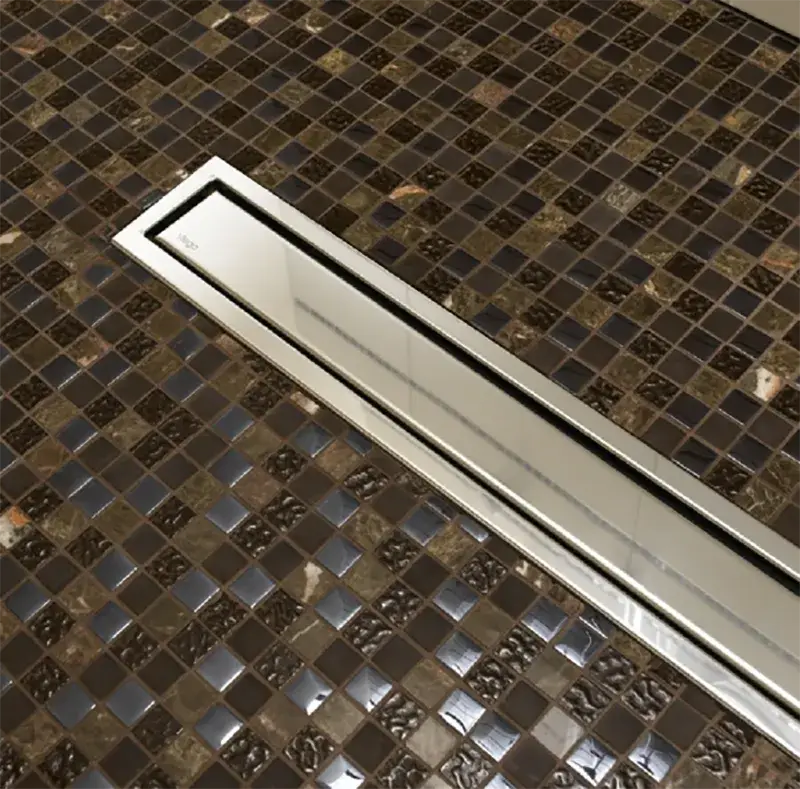 Трап душевой L 1000мм с решоткой и монтажной рамкой 120*11*16.5, матовый хром