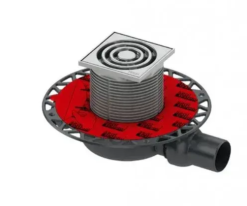 Трап горизонтальный, в комплекте с сифоном, гидрозатвор, декор.решетка 10.5*10.5, производительность 0,8-1,17 л/с полиров.нерж.сталь