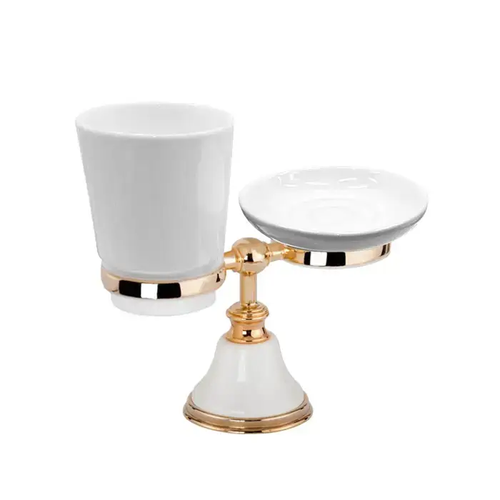 TW Harmony 141, настольный держатель с мыльницей и стаканом, керамика (бел), цвет: белый/золото