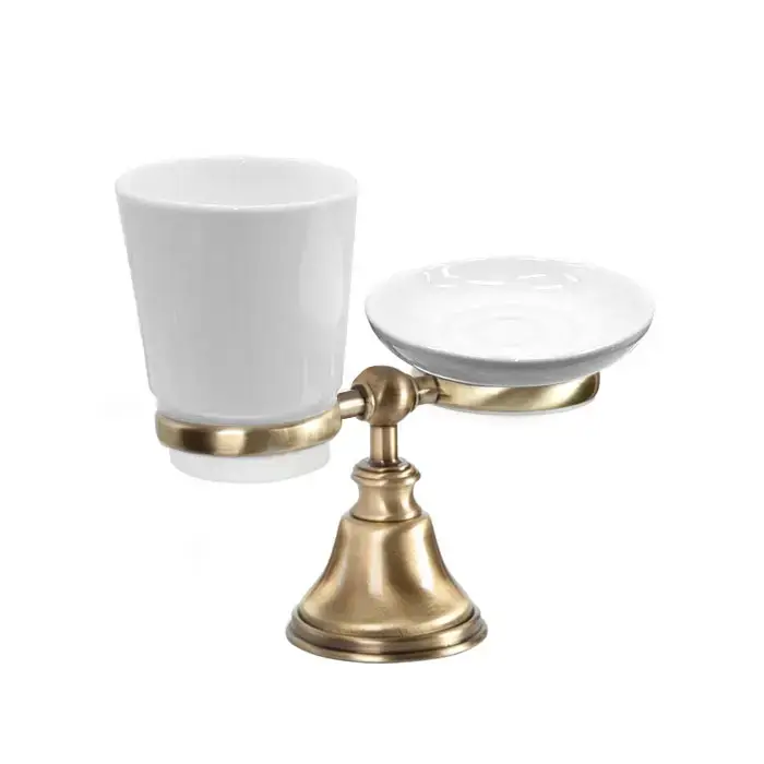 TW Harmony 141, настольный держатель с мыльницей и стаканом, керамика (бел), цвет: бронза