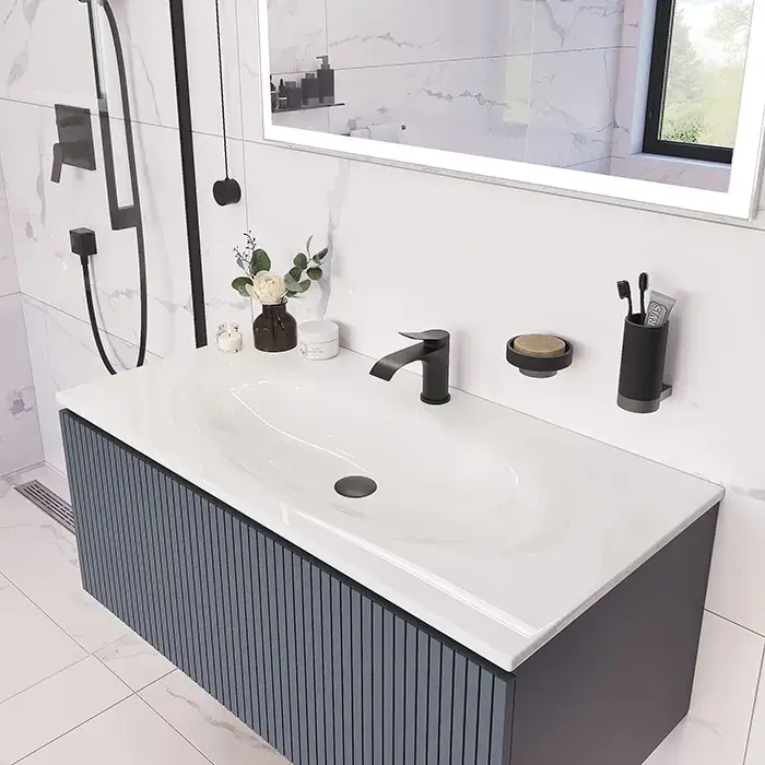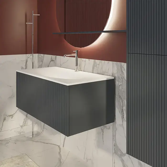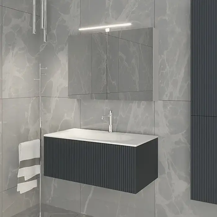 TW Shape комплект подвесной мебели 100х50см, с раковиной, с 1 выдвиж. ящиком с механизмом push-to-open, цвет: серый матовый RAL7016