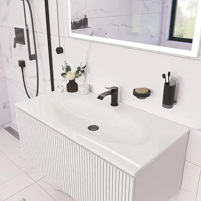 TW Shape комплект подвесной мебели 100х50см, с раковиной, с 1 выдвиж. ящиком с механизмом push-to-open, цвет: белый матовый RAL9003