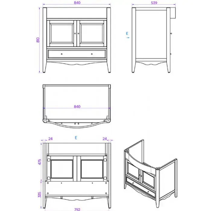 TW Veronica, База с раковиной Simas AR864bi*1 90x56см, с 1отв., 2 распашные дверки+1 выдв.ящик, доводч. Blum, ручки: Riflesso бронза, напольная, цвет: GRIDGIO