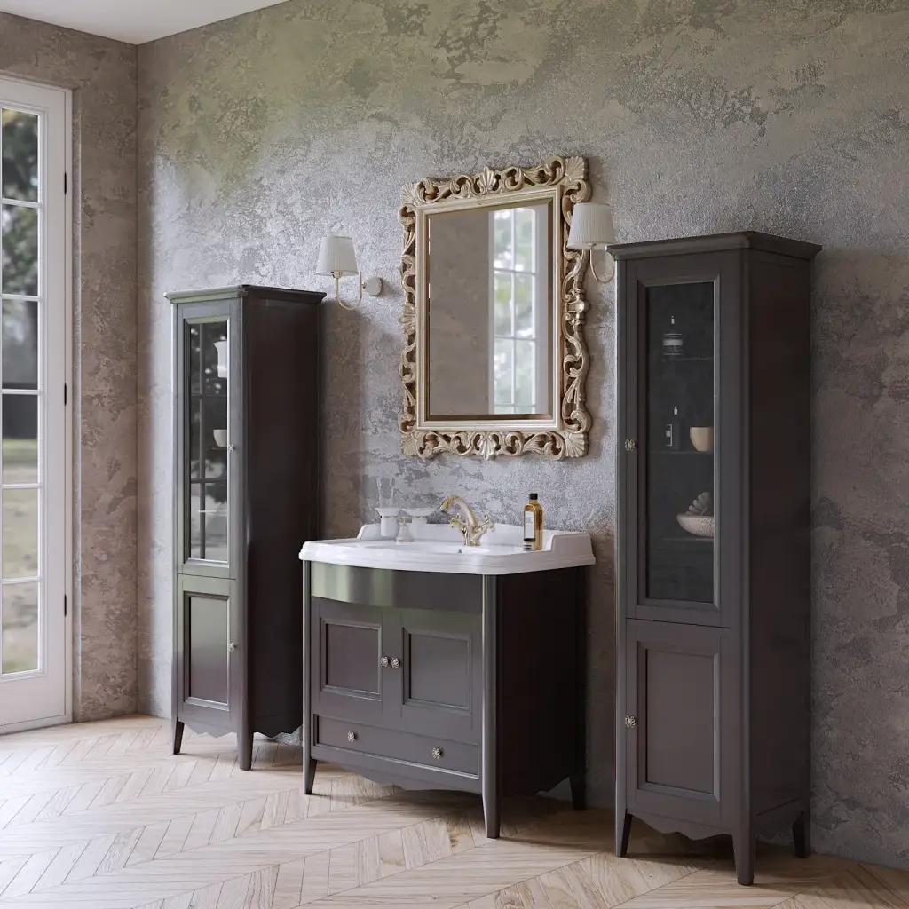 TW Veronica, База с раковиной Simas AR864bi*1 90*56см, с 1отв., 2 распашные дверки+1 выдв.ящик, доводч. Blum, ручки: Riflesso бронза, цвет: GRIDGIO