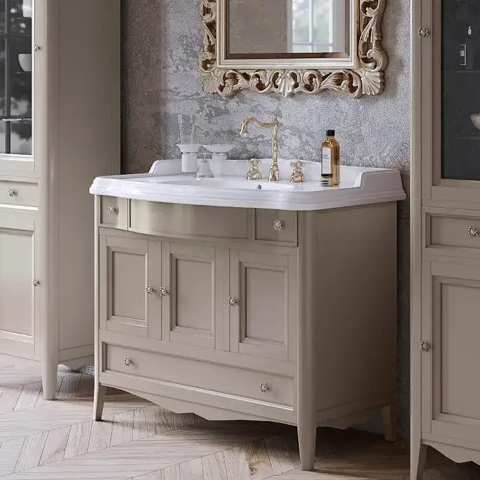 TW Veronica, База с раковиной Simas AR874bi*1 105x56см, с 1отв., 3 расп. дв. и 1ящик, доводч. Blum, ручки: Riflesso бронза, напольная, цвет: GRIDGIO