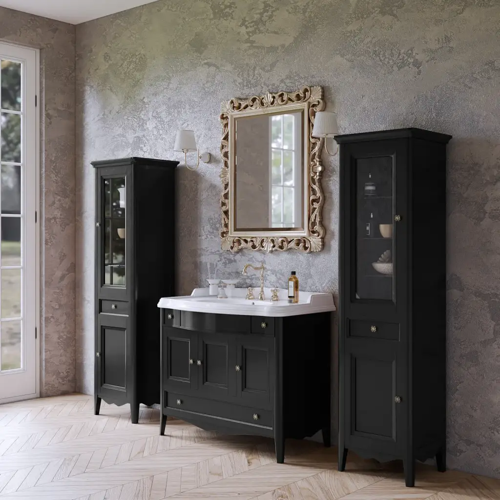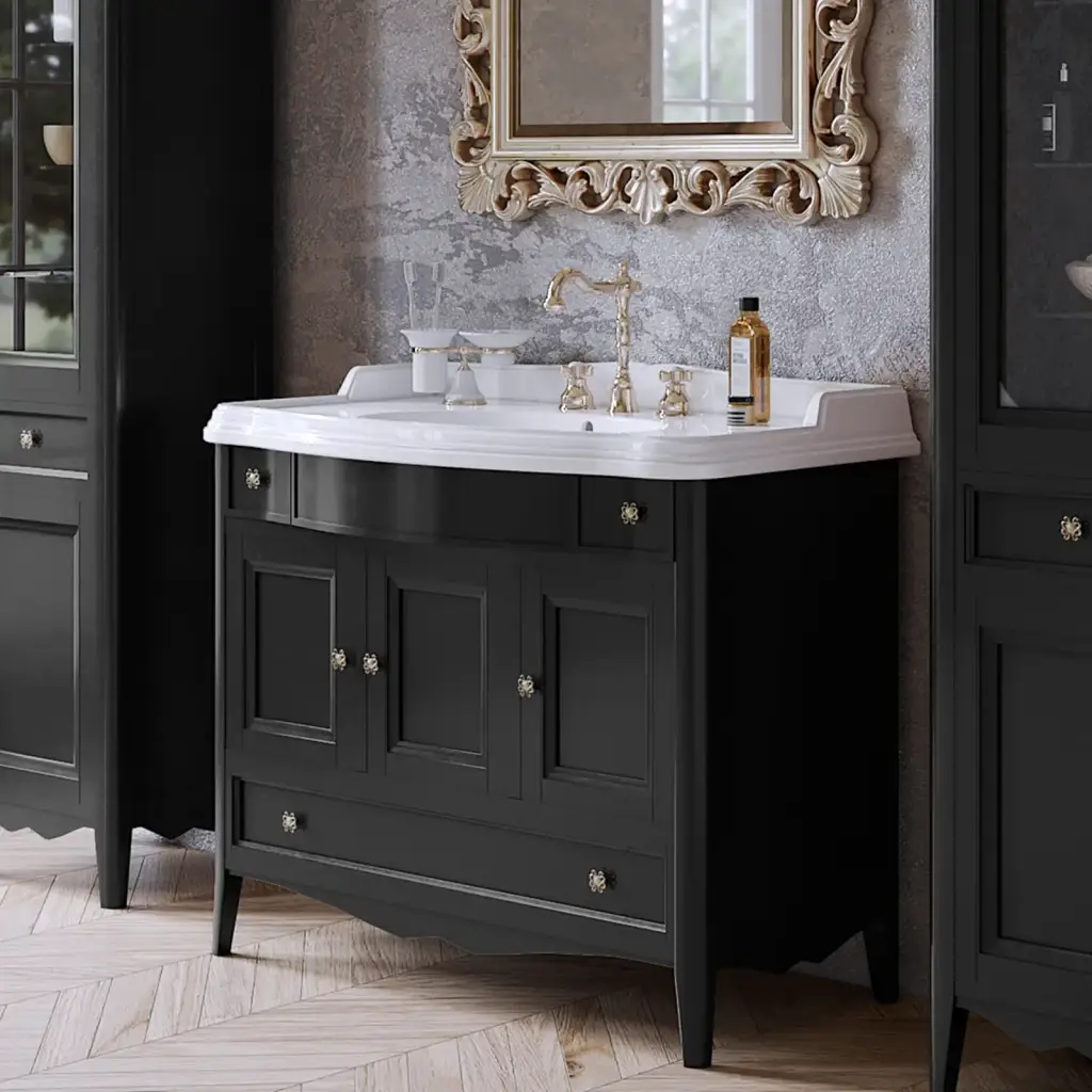 TW Veronica, База с раковиной Simas AR874bi*1 105x56см, с 1отв., 3 расп. дв. и 1ящик, доводч. Blum, ручки: Riflesso бронза, напольная, цвет: GRIDGIO