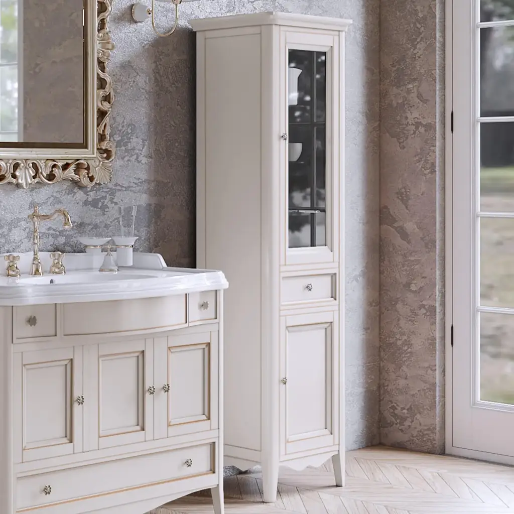 TW Veronica, Колонна 50.2/45x40/37.4 x h172см, 1выдв.ящик, 2 распашные дверки, доводчики Blum (петли справа-DX), напольная, цвет: VINTAGE, ручки: Riflesso бронза