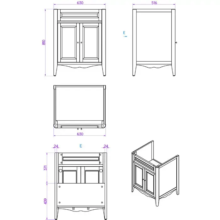 TW Veronica, База с раковиной Simas AR824bi*1 68*54см с 1отв. под смеситель , 2 расп. дверки, доводч. Blum, ручки: Riflesso бронза, цвет: noce