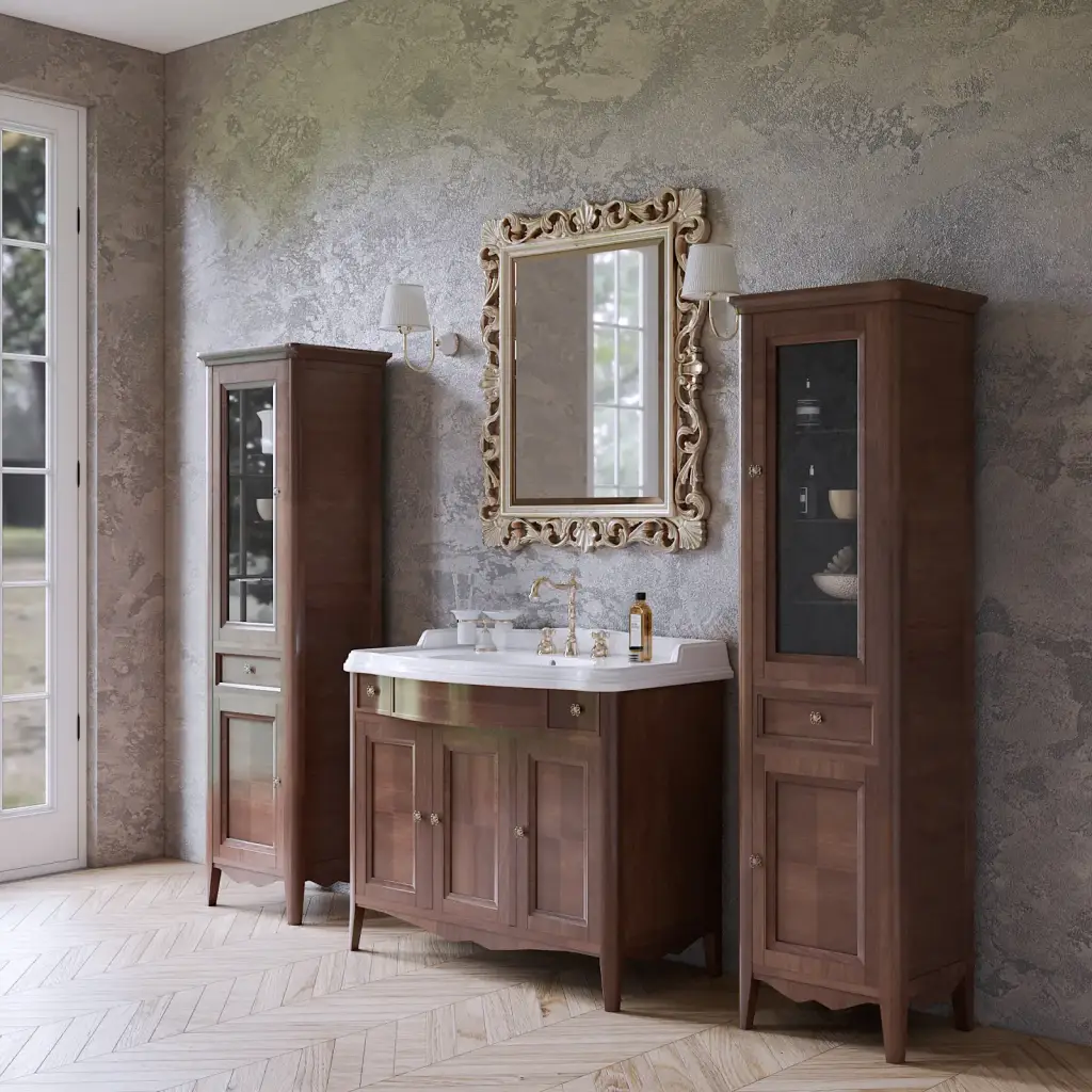 TW Veronica, База с раковиной Simas AR874bi*1 105*56см, с 1отв., 2 верх.ящ. 3 распашные дверки, доводч. Blum, ручки: Riflesso бронза, цвет: noce