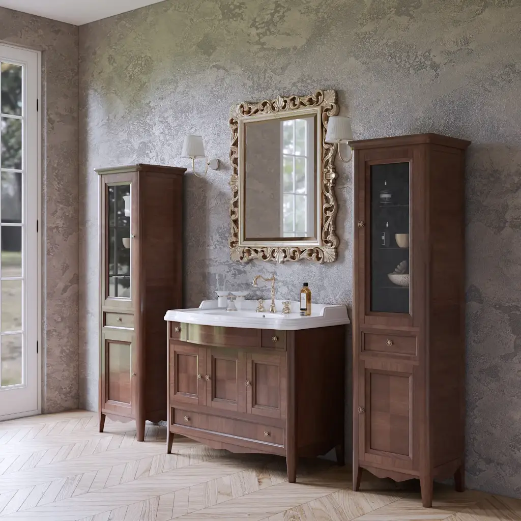 TW Veronica, База с раковиной Simas AR874bi*1 105*56см, 2 верх.ящ. 3 расп. дв. и 1 выдв. ящик, доводч. Blum, ручки: Riflesso бронза, цвет: noce