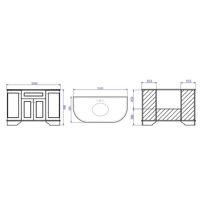 TW York Nuovo Комплект мебели, с мраморной столешницей с 3 отв. 130см, напольный, цвет: pennellato/oro/diano