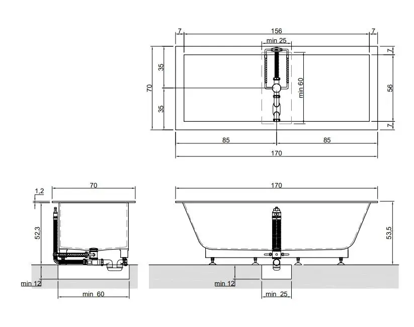Antonio Lupi Biblio Ванна пристенная (2стороны) 170х70х53.5см, цвет: белый