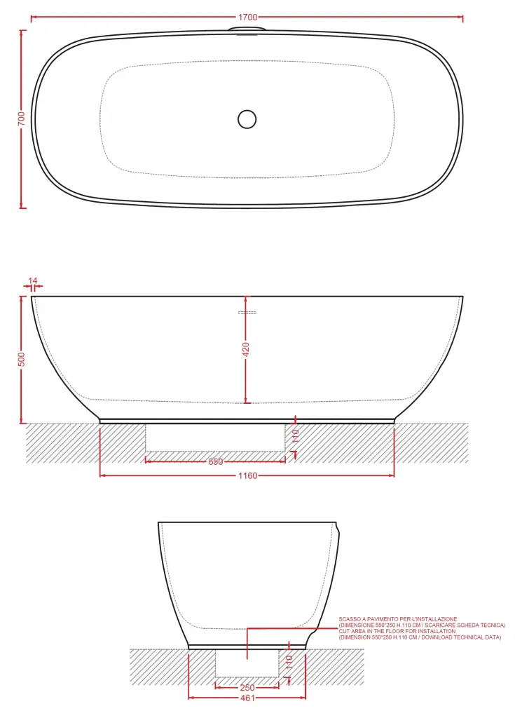 Ванна Art Ceram HOOP ACW002.01 белый блестящий