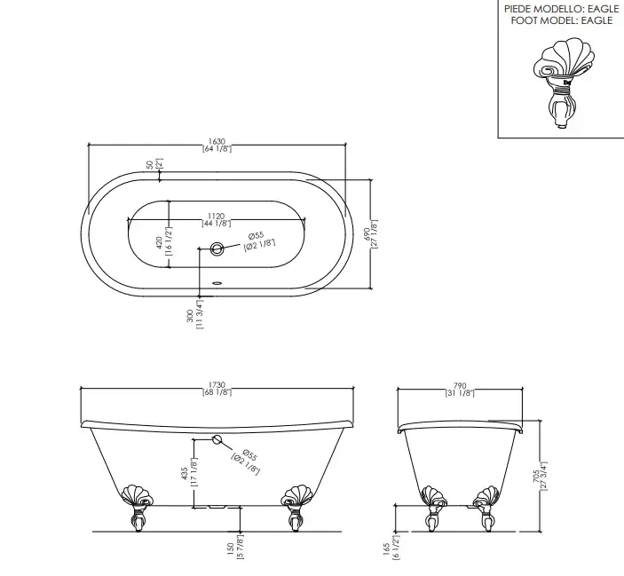 Ванна Devon&Devon ADMIRAL Eagle 2MRADMIRAL172CRDD ножки - полированный алюминий, внешняя окраска - лак