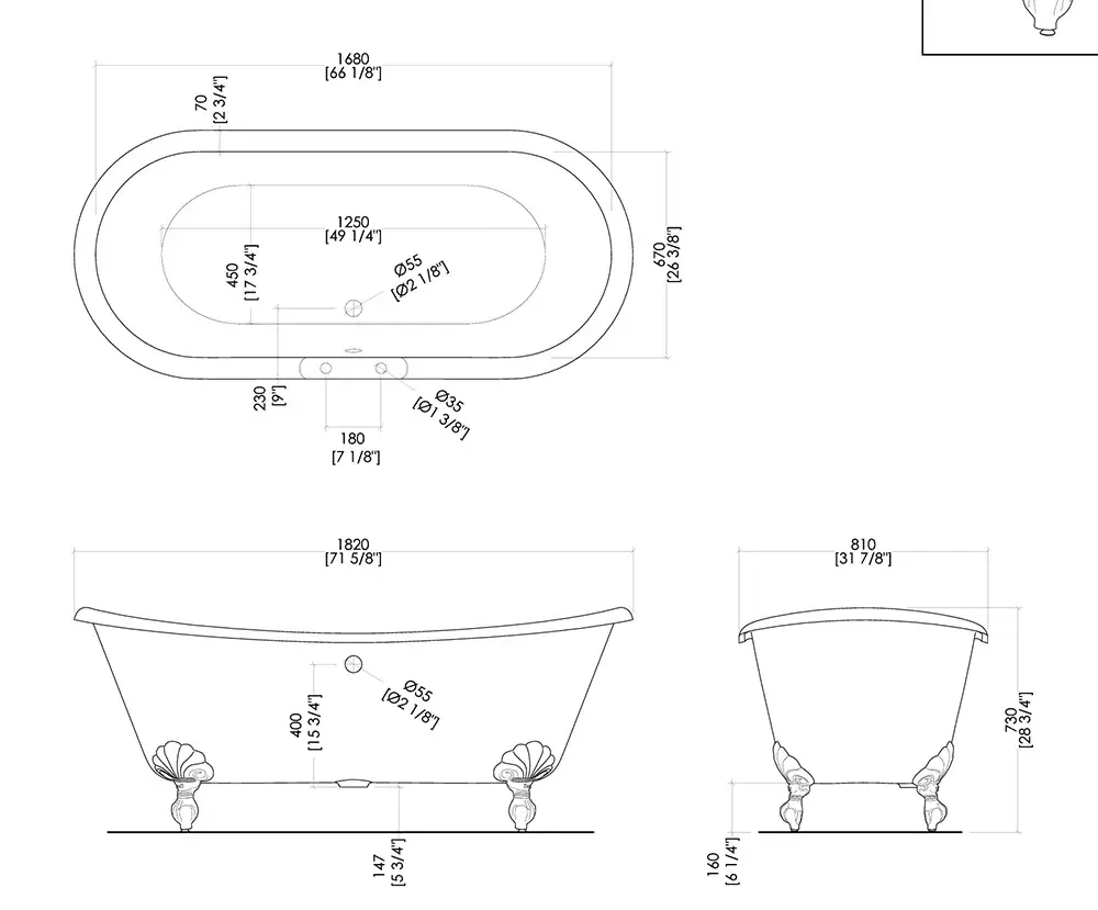 Ванна Devon&Devon ADMIRAL Eagle 2MRADMLRAL172OTDD ножки - полированная латунь