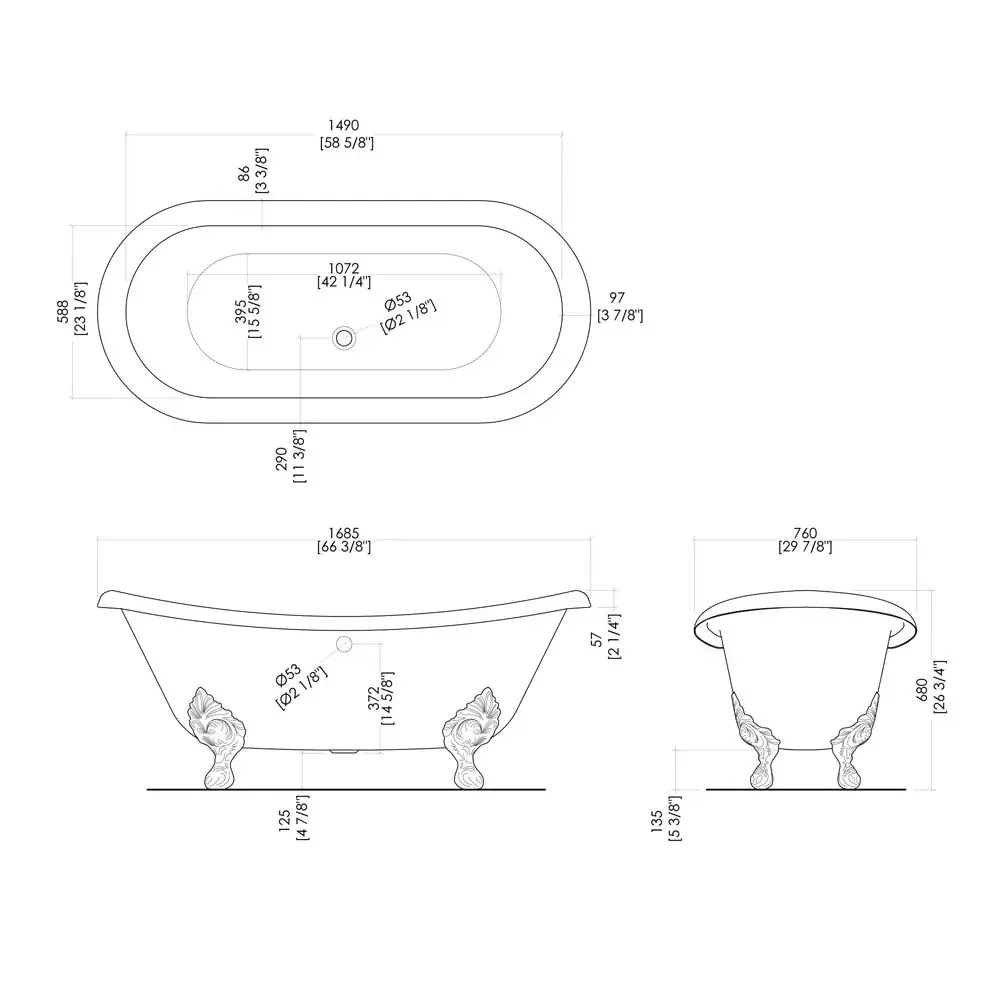 Ванна Devon&Devon Chérie 2MRCHERIEFLCRDD + SFD1058SNKSA слив-перелив для ванны с пробкой и цепочкой мат. никель, ножки полированный алюминий