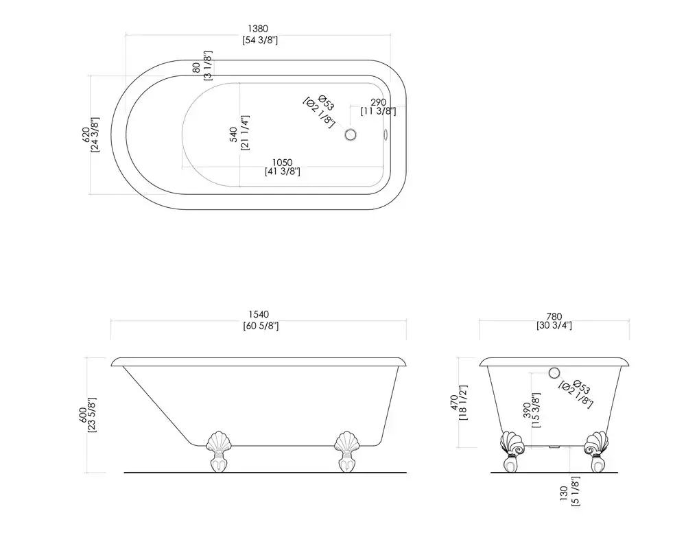 Ванна Devon&Devon Kensington 154 2MRKEN154CRDD WHITE TEC белый матовый