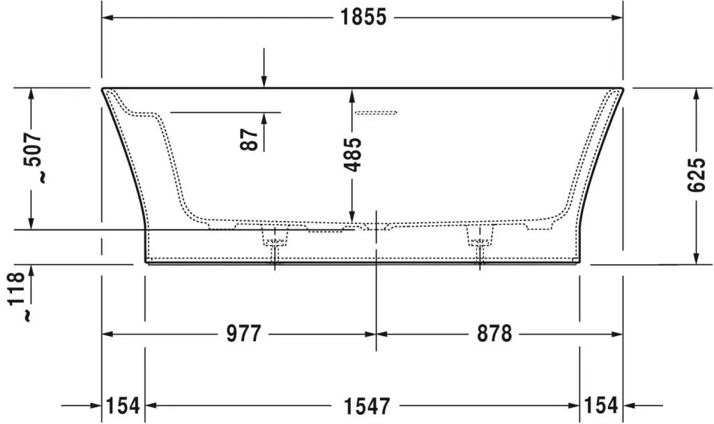 DuraSolid® A, цвет белый; с бесшовной панелью и ножками, с двумя наклонами для спины, со специальным сливом и переливом