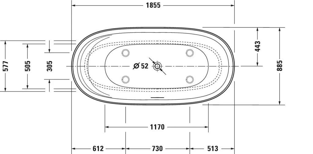 Ванна Duravit CAPE COD 700330000000000 DuraSolid® A, цвет белый; с бесшовной панелью и ножками, с двумя наклонами для спины, со специальным сливом и переливом