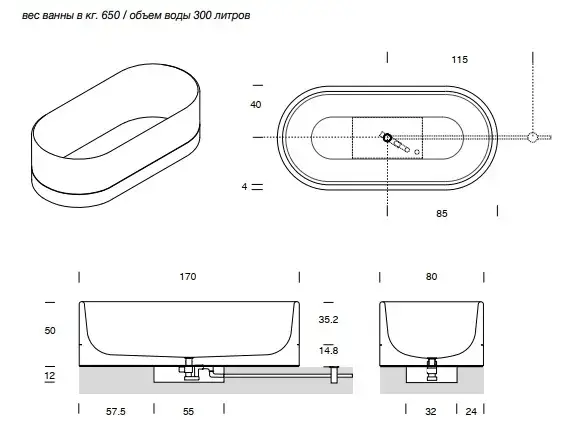 Ванна Milldue ROMA 5079 мрамор BIANCO CARRARA-A10B