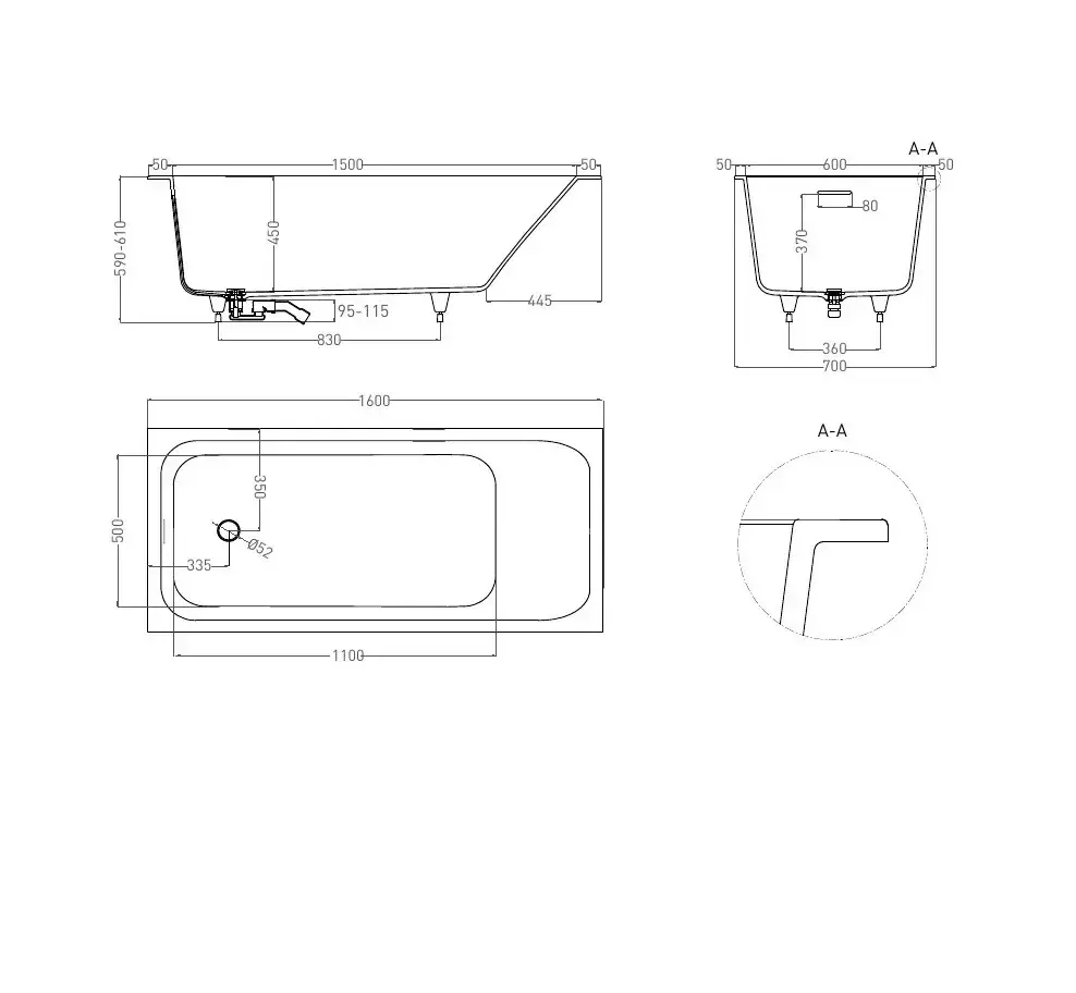 Ванна SALINI ORLANDA KIT 102115G S-Sense глянцевый белый/дон.клап. Up&Down белый