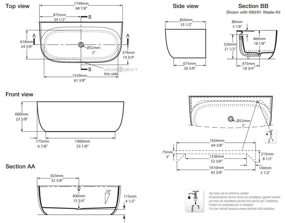 Ванна Victoria+Albert ELDON ELD-N-SW-NO белый