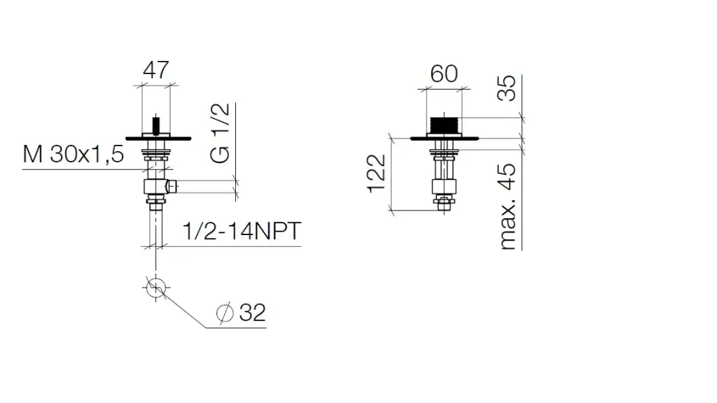 Вентиль боковой запирание влево горячий 60x47 мм платина матовая