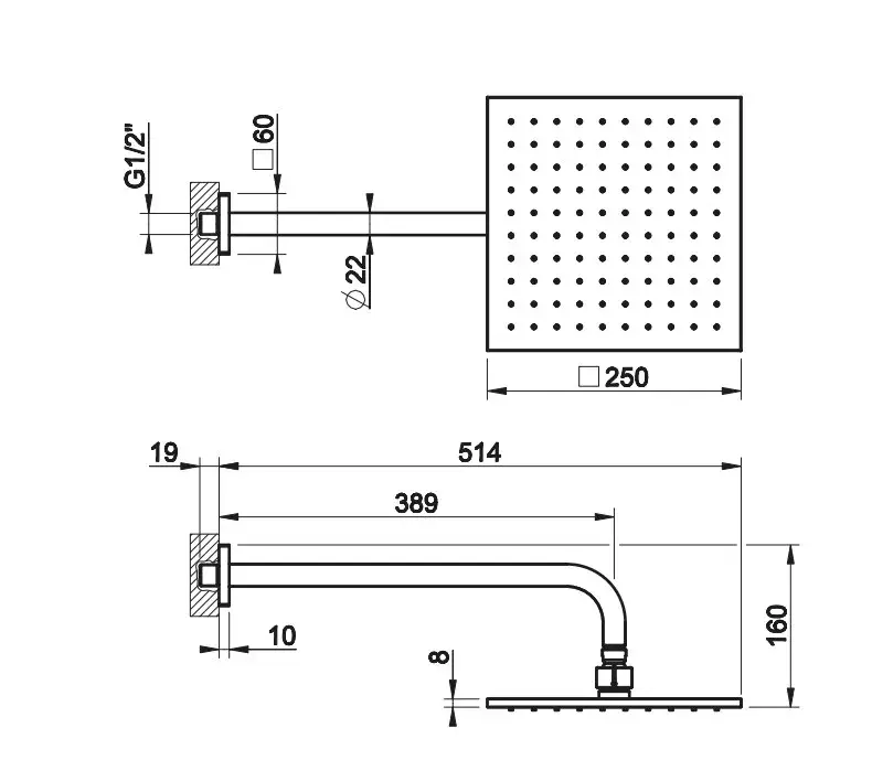 Gessi Rilievo Потолочная душевая головка на 1/2" 250x250 мм, длина изгот. под заказ (105 - 1855 мм), цвет: хром