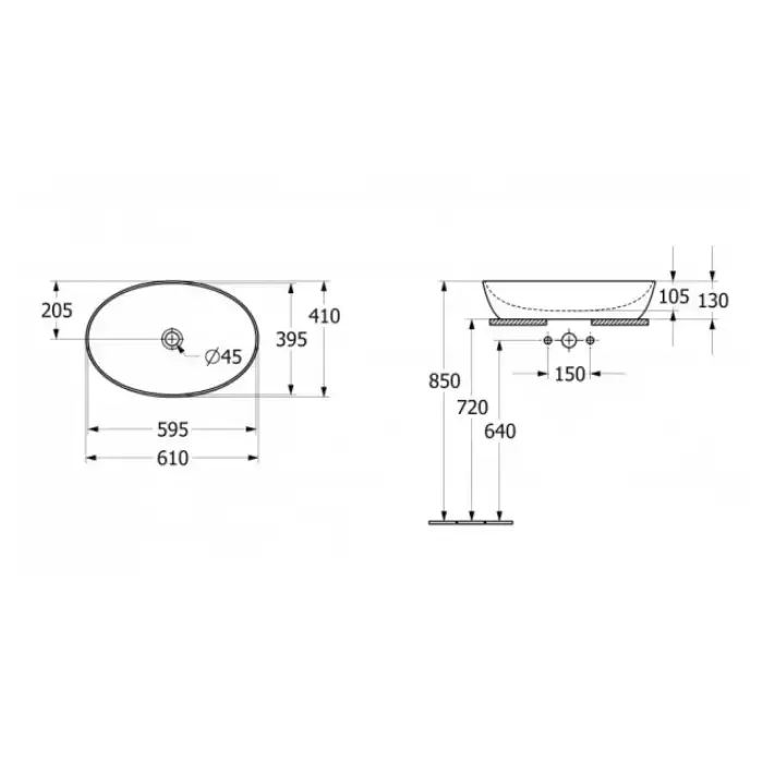 Villeroy&Boch Artis Раковина накладная 610*420*125h, без отв. под смеситель, без перелива, TitanCeram, цвет альпийский белый