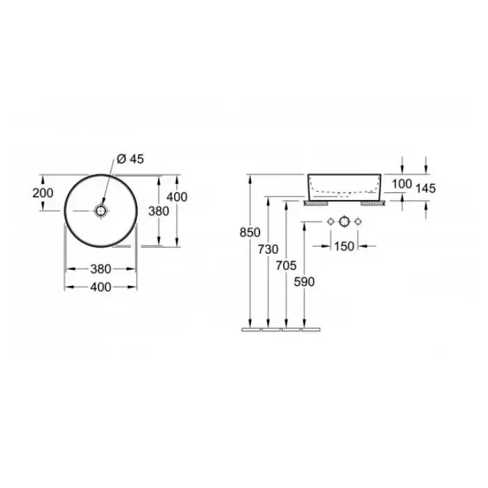 Villeroy&Boch Collaro Раковина накладная 400*400*145h, без отв. под смеситель, без перелива, TitanCeram, цвет альпийский белый