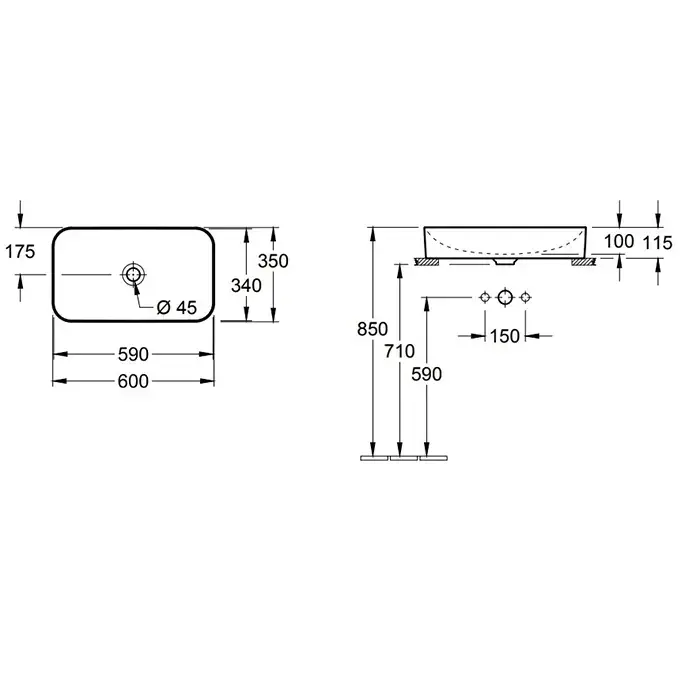 Villeroy&Boch Finion Раковина накладная 60х35х11.5см., без отв., CeramicPlus, цвет: белый