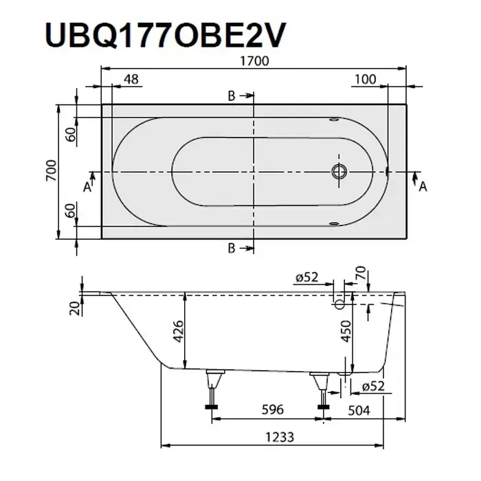 Villeroy&Boch Oberon Ванна встраиваемая, 170х70х45см., прямоугольная, цвет: белый