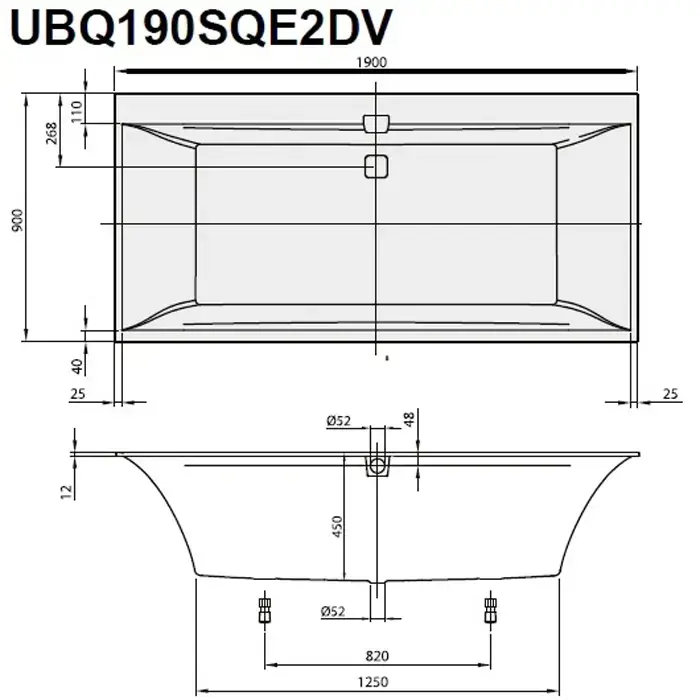 Villeroy&Boch Squaro Edge 12 Ванна 1900*900*450 ножки, слив-перелив цвет хром и белый, ванна цвет: белый