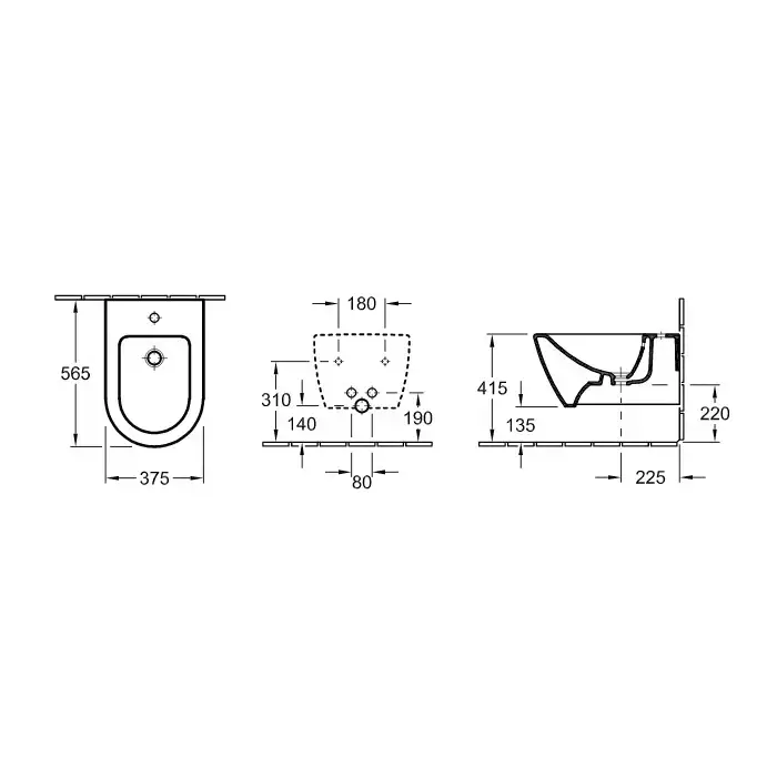 Villeroy&Boch Subway 2.0 Биде подвесное 375*565*280, с 1 отв. под смеситель, цвет альпийский белый