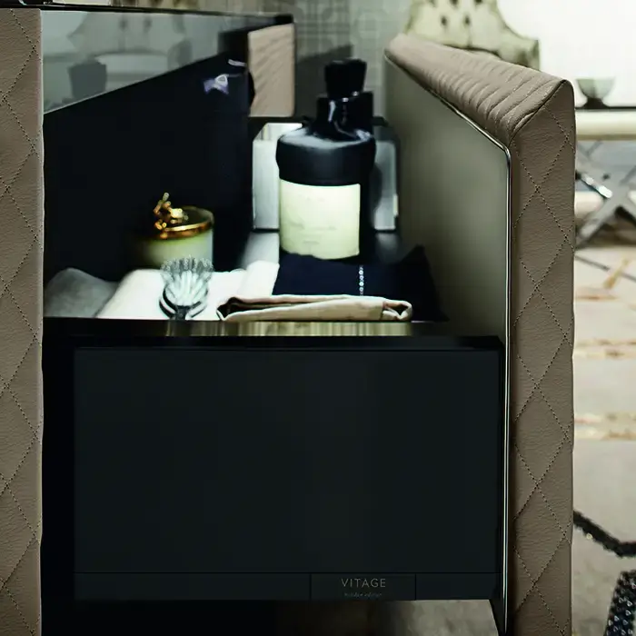 VITAGE milldue edition Зеркало LOSANNA 1980х1080х50 мм, с светодиодной подсветкой, отделка по периметру черный хром, отделка рамы стеганая кожа Visone