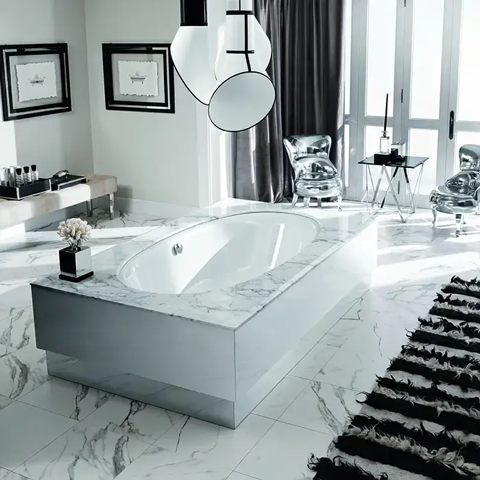 VITAGE milldue edition Four Seasons Топ для ванны 2155х1305х20 мм., со скошенным краем, разделен на 2 части по длине, мрамор Calacatta vagli