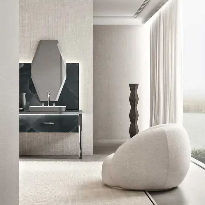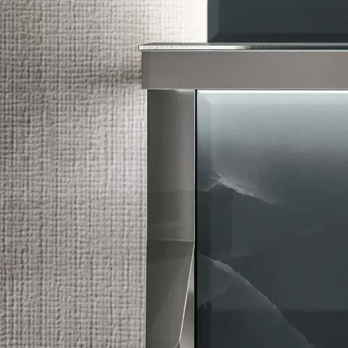 VITAGE milldue edition HILTON Столешница стеклянная 2392х588х46мм, c 2 отверстиями для раковин, с подсветкой, профиль полир сталь, отделка Onice smoke